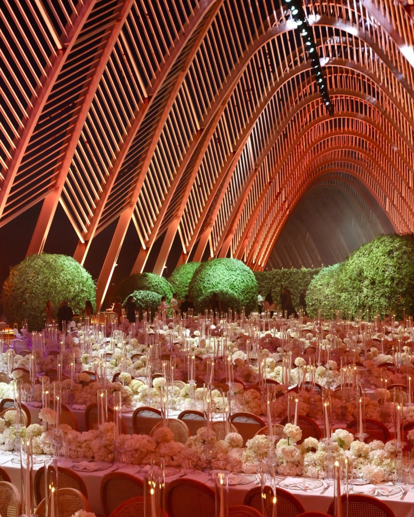 To OAKA μετατράπηκε σε έναν ονειρεμένο χώρο όπου πραγματοποιήθηκε η γαμήλια δεξίωση η οποία πραγματοποιήθηκε κάτω από την αψίδα Καλατράβα στην είσοδο του σταδίου.