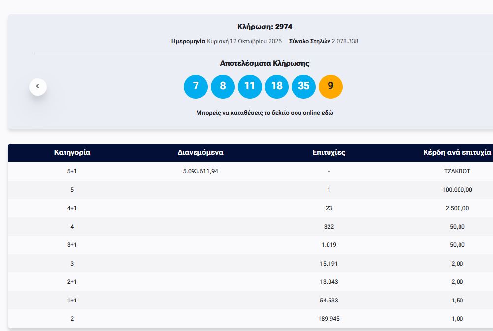 Έγινε η κλήρωση με αριθμό 2974 του ΤΖΟΚΕΡ το βράδυ της Κυριακής (12/10).