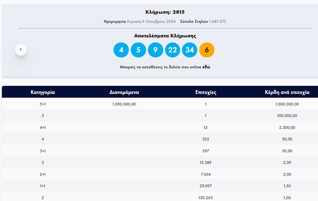Έγινε η κλήρωση με αριθμό 2815 του ΤΖΟΚΕΡ το βράδυ της Κυριακής (6/10).