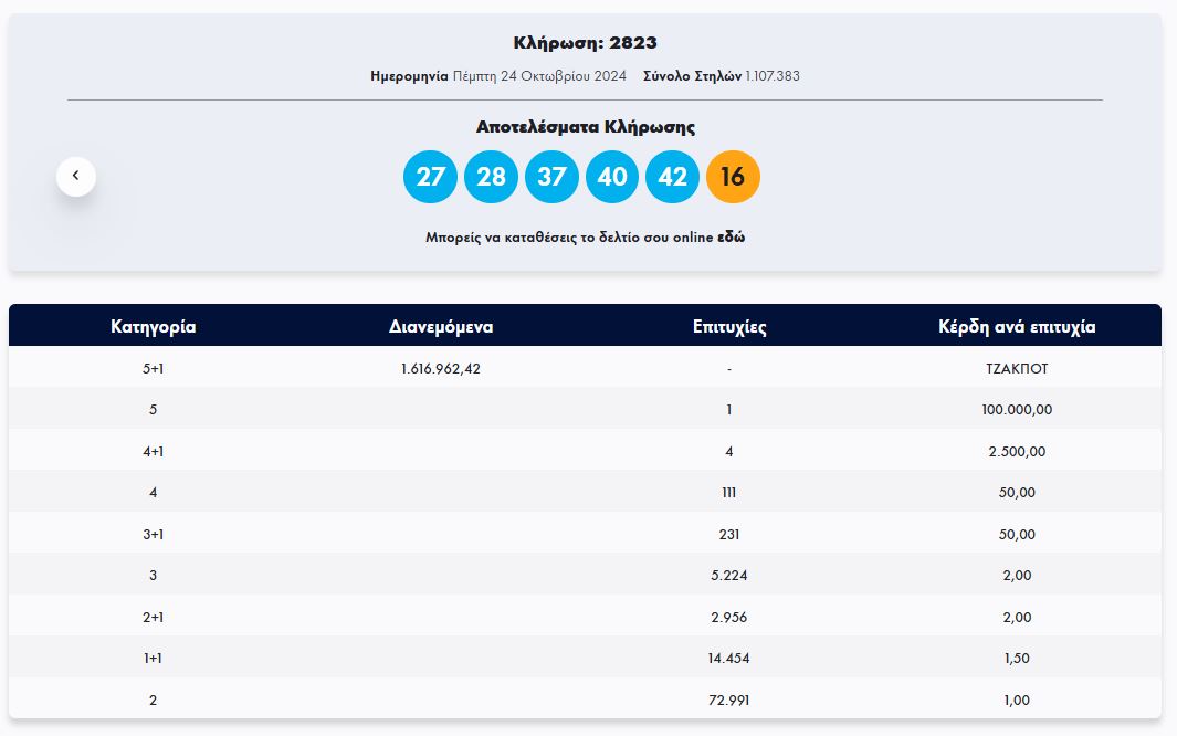 Έγινε η κλήρωση με αριθμό 2823 του ΤΖΟΚΕΡ το βράδυ της Πέμπτης (24/10).