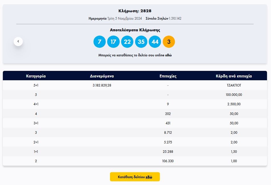 Έγινε η κλήρωση με αριθμό 2828 του ΤΖΟΚΕΡ το βράδυ της Tρίτης (5/11).