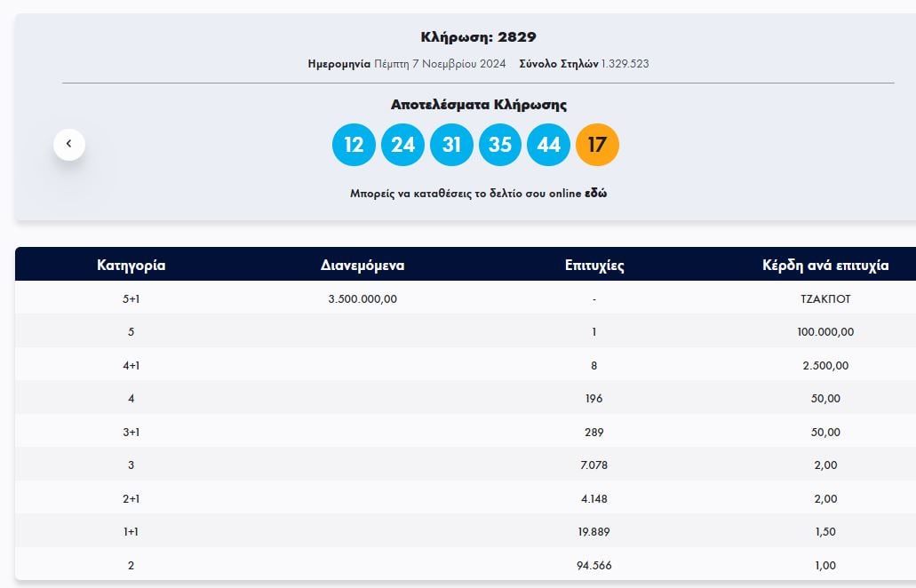 Έγινε η κλήρωση με αριθμό 2829 του ΤΖΟΚΕΡ το βράδυ της Πέμπτης (7/11).