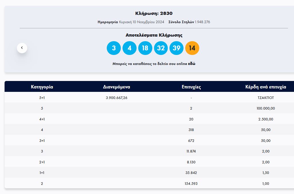 Έγινε η κλήρωση με αριθμό 2830 του ΤΖΟΚΕΡ το βράδυ της Κυριακής (10/11).