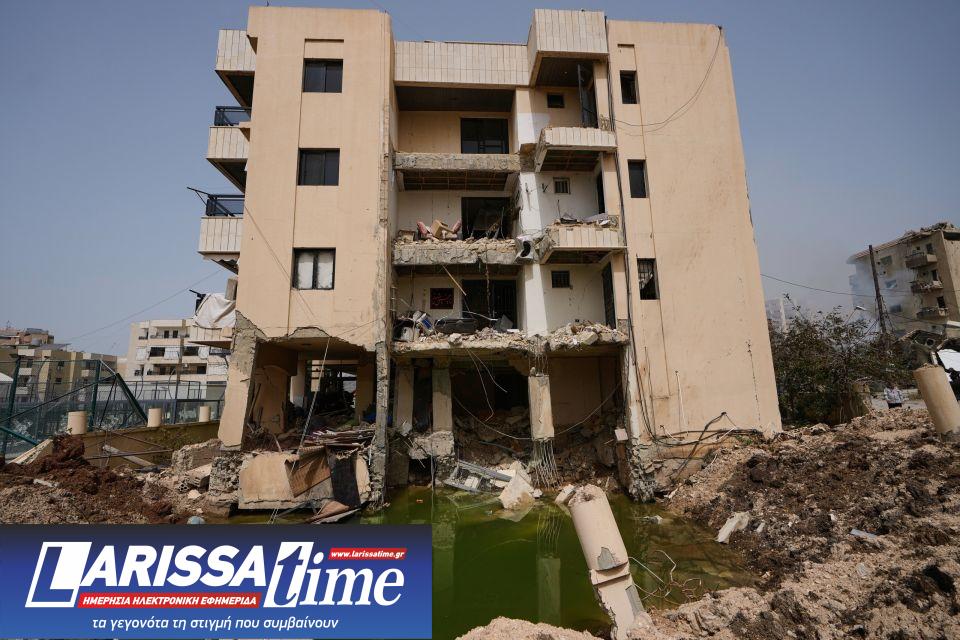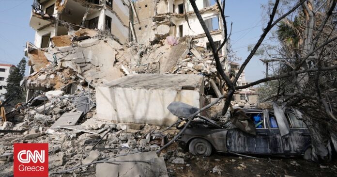 Εικόνες μεταφέρουν τα σφοδρά πλήγματα σε ένα κτήριο στο Μπουρτζ Σαμάλι.