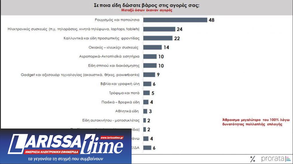 Ο ρουχισμός και τα παππούτσια κυριάρχησαν στις αγορές των καταναλωτών κατά 48% ενώ δεύτερη πιο αγαπημένη αγορά είναι οι ηλεκτρικές συσκευές (24%) μαζί με τα καλυντικά και είδη προσωπικής φροντίδας (22%).