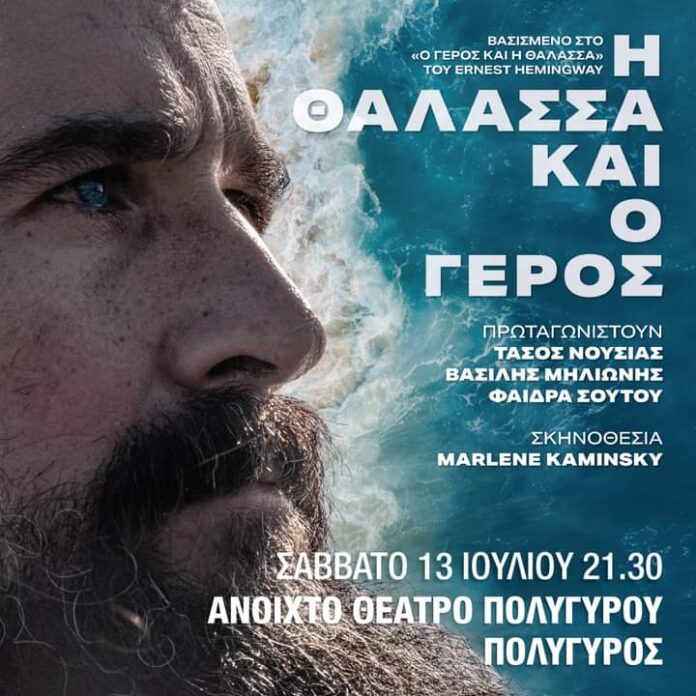 Το Σάββατο 13 Ιουλίου και ώρα 21:30, στο Ανοιχτό Θέατρο Πολυγύρου το κοινό θα έχει την ευκαιρία να απολαύσει τη θεατρική παράσταση «Η ΘΑΛΑΣΣΑ ΚΑΙ Ο ΓΕΡΟΣ». Πρόκειται για ένα έργο που εμβαθύνει και αναδεικνύει τη δύναμη του ανθρώπινου πνεύματος. Ο Σαντιάγο, ένας αποφασισμένος ψαράς, αντιμετωπίζει τη θάλασσα, ως πηγή πάθους και πνευματικής εξέλιξης. Η επίμονη αναζήτησή του και η μάχη του με τον βασιλιά των ψαριών, το μπλε Μάρλιν, γίνεται μια πνευματική περιπέτεια, η οποία αποκαλύπτει τις εσωτερικές δυνάμεις και τις αντιφάσεις της ανθρώπινης ψυχής. Μέσα από το ταξίδι του ανακαλύπτει τη σημασία της ανθεκτικότητας και της αναζήτησης για νόημα και αλήθεια στον κόσμο. Διασκευή, Σκηνοθεσία: Μαρλέν Καμίνσκι. Πρωταγωνιστούν: Σαντιάγο: Τάσος Νούσιας, Μανολίνο: Βασίλης Μηλιώνης, Θάλασσα: Φαίδρα Σούτου. Ακούγεται η φωνή της Evelyn Assouad.