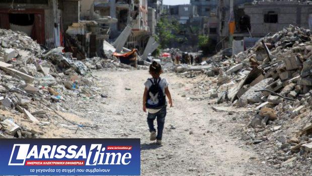 Το παλαιστινιακό ισλαμιστικό κίνημα Χαμάς επανέλαβε με ανακοίνωση που δημοσιοποίησε τις πρώτες μεταμεσονύχτιες ώρες σήμερα Πέμπτη ότι δεν υπάρχει ανάγκη να καταρτιστεί και να υποβληθεί νέα πρόταση για τη σύναψη συμφωνίας κατάπαυσης του πυρός με το Ισραήλ στη Λωρίδα της Γάζας (στη φωτογραφία του Reuters/Hatem Khaled, επάνω, μικρή παλαιστίνια μαθήτρια πηγαίνει στο σχολείο-τέντα που έχει στήσει ο δάσκαλός της στα συντρίμμια της Χαν Γιούνις).