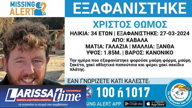 Συναγερμός έχει σημάνει στις αρχές για την εξαφάνιση του 34χρονου Χρίστου Θώμου με καταγωγή από την Κρανέα Ελασσόνας.