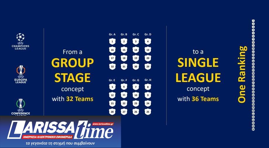 Το κεντρικό χαρακτηριστικό της νέας μορφής είναι η εγκατάλειψη της φάσης των ομίλων. Αντί για 32 ομάδες που χωρίζονταν σε οκτώ ομίλους, το Champions League θα περιλαμβάνει πλέον 36 ομάδες που θα αγωνίζονται σε ένα ενιαίο πρωτάθλημα. Κάθε ομάδα θα παίζει 8 αγώνες έναντι διαφορετικών αντιπάλων, τέσσερις εντός και τέσσερις εκτός έδρας, σε ένα πιο ευρύ σύστημα που θα εξασφαλίζει μεγαλύτερη ποικιλία αντιπάλων και περισσότερους δυνατούς αγώνες από την αρχή της διοργάνωσης.
