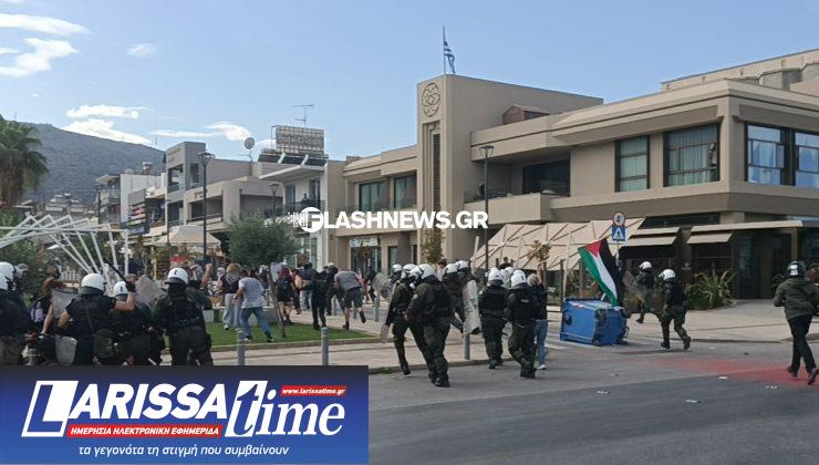 Επεισόδια προκλήθηκαν σήμερα (4/11) το πρωί στην πλατεία της Σούδας, στα Χανιά, μεταξύ αστυνομικών δυνάμεων και διαδηλωτών που διαμαρτύρονταν για την άφιξη ισραηλινού κρουαζιερόπλοιου στο λιμάνι.