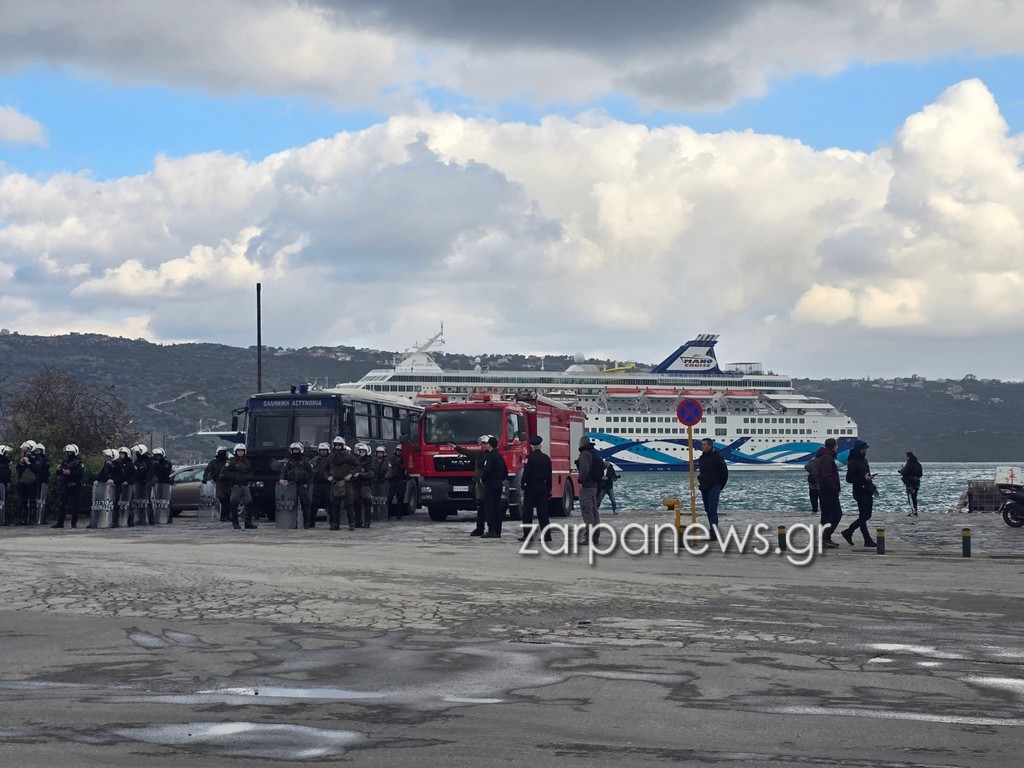 Με 8 διμοιρίες ΜΑΤ και ενισχύσεις από την ηπειρωτική Ελλάδα, η Σούδα μπήκε σε αστυνομικό κλοιό προκειμένου να αποβιβαστούν με ασφάλεια οι Ισραηλινοί επιβάτες του κρουαζιερόπλοιου Crown Iris.