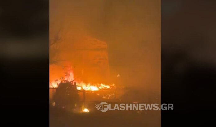 Σύμφωνα με το flashnews.gr, η φωτιά πήρε γρήγορα μεγάλες διαστάσεις, καθώς στο χωριό πνέουν ισχυροί άνεμοι, ενώ καίει κοντά σε σπίτια.