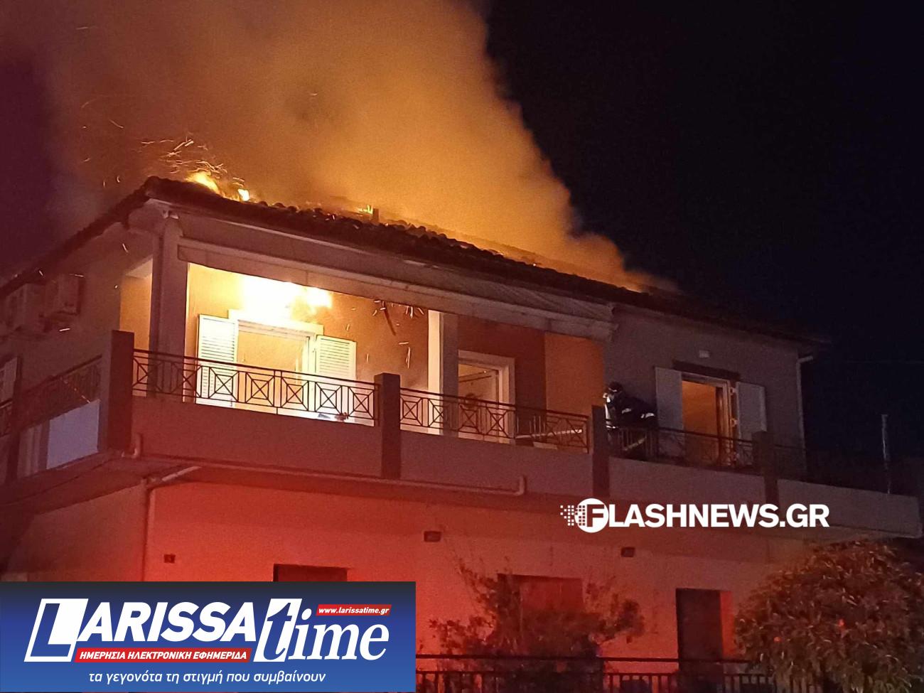 Η στέγη του σπιτιού παραδόθηκε ολοκληρωτικά στις φλόγες, ενώ η φωτιά επεκτάθηκε και στον πρώτο όροφο του οικήματος