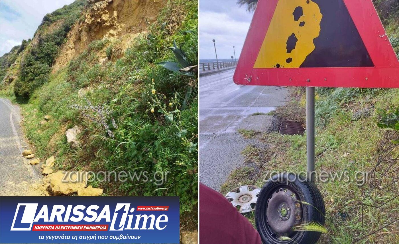 Στο σημείο υπάρχει πινακίδα προειδοποίησης για κατολισθήσεις… αλλά όπως φαίνεται τα προστατευτικά μέτρα δεν είναι αρκετά.