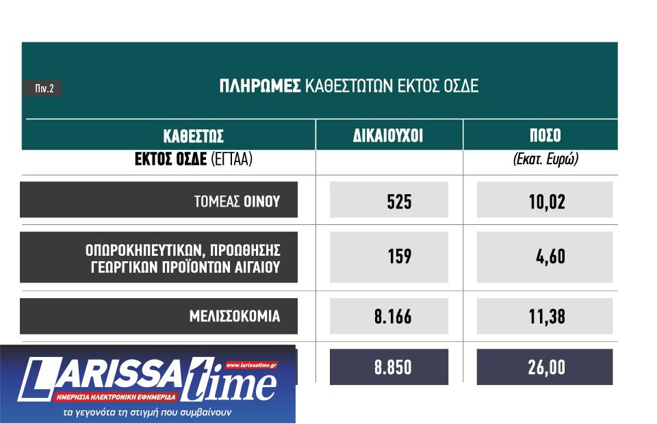 (**)Σηµειώνεται ότι ειδικά για την ενίσχυση Αιγοπρόβειου, αριθµός 34.617 αιτήσεων ποσού 10 εκατ. ευρώ περίπου, εκτιµάται ότι θα πληρωθούν εντός Νοεµβρίου 2025, καθώς απαιτείται περαιτέρω διασταύρωση της παραγωγής γάλακτος σε σχέση µε τα στοιχεία του myDATA.