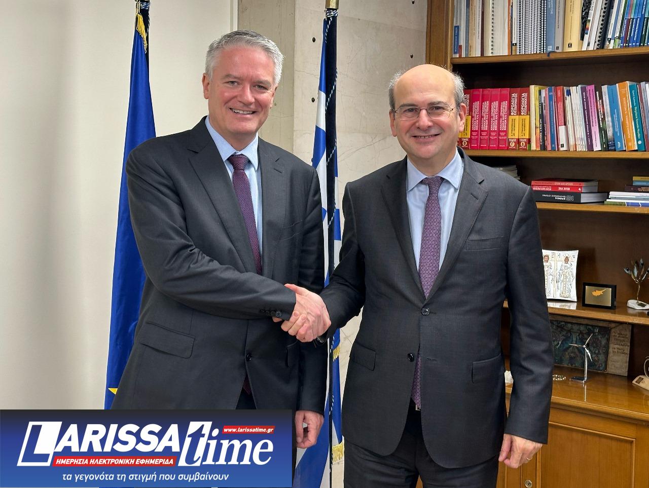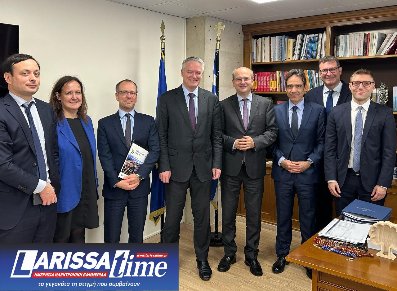 Με τον Γενικό Γραμματέα του ΟΟΣΑ Ματίας Κόρμαν συναντήθηκε σήμερα ο υπουργός Εθνικής Οικονομίας και Οικονομικών Κωστής Χατζηδάκης, στο πλαίσιο της παρουσίασης της Έκθεσης του ΟΟΣΑ για την Ελλάδα, που πραγματοποιήθηκε με τη συμμετοχή του Πρωθυπουργού Κυριάκου Μητσοτάκη στο Μέγαρο Μαξίμου.
