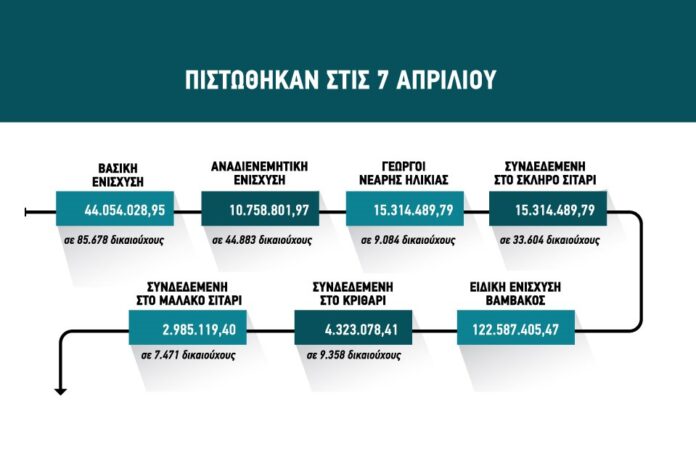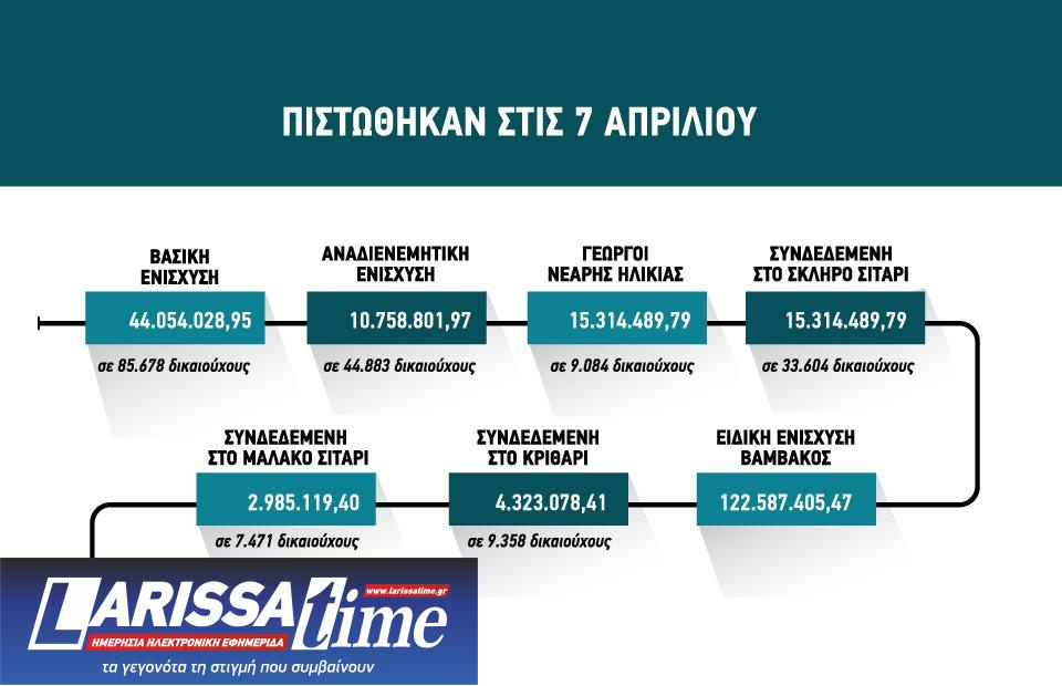 • Βασική ενίσχυση: 44.054.028,95 ευρώ σε 85.678 δικαιούχους
