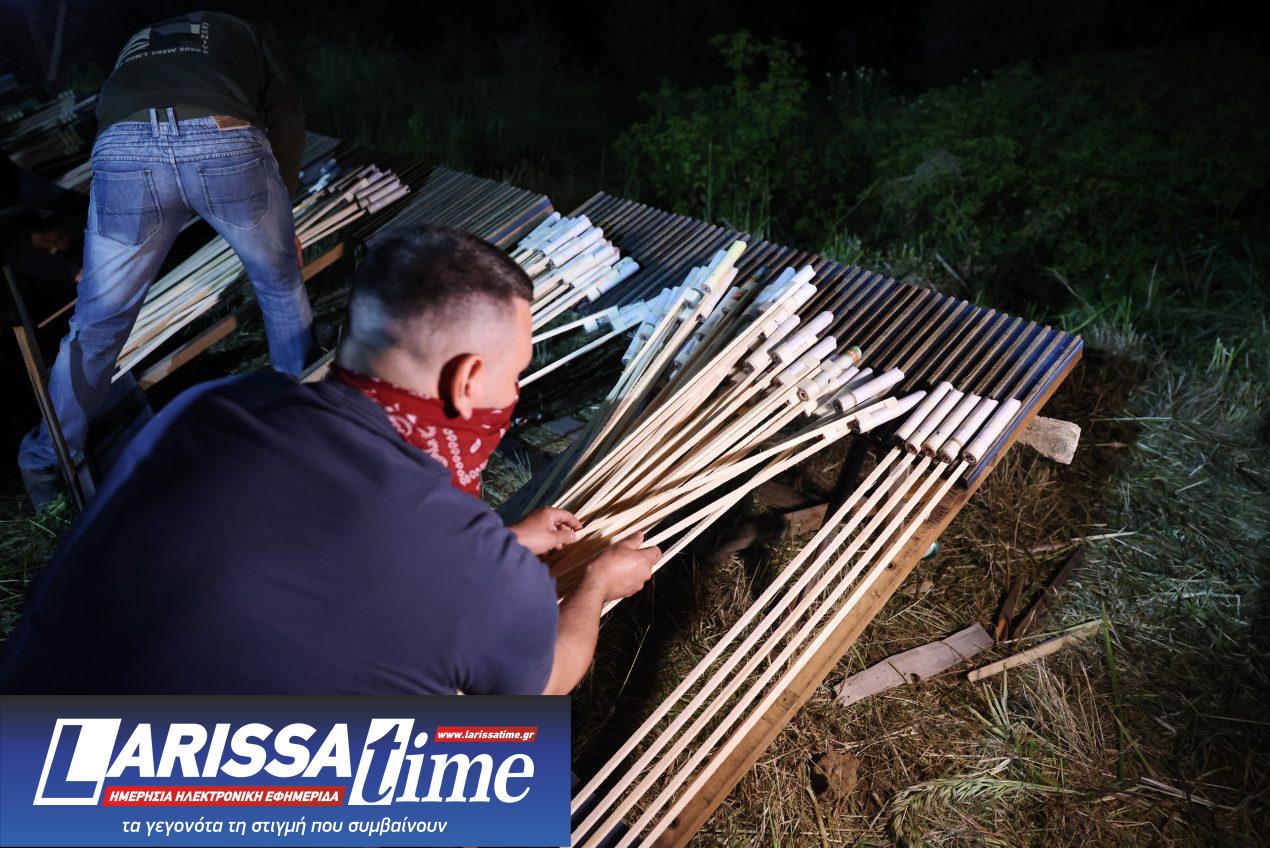 Οι ρουκετατζήδες των δύο εκκλησιαστικών ενοριών, της Παναγίας Ερειθιανής και του Αγίου Μάρκου, ξεκίνησαν τις προετοιμασίες τους από νωρίς το βράδυ, με τις πρώτες δοκιμαστικές ρίψεις να πραγματοποιούνται γύρω στις 21:30.