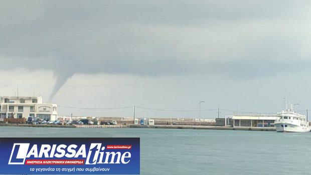 Πρόκειται για ένα εντυπωσιακό φυσικό φαινόμενο που δημιουργήθηκε ανοιχτά του νησιού όπου κατά διαστήματα είχε έντονη βροχόπτωση.