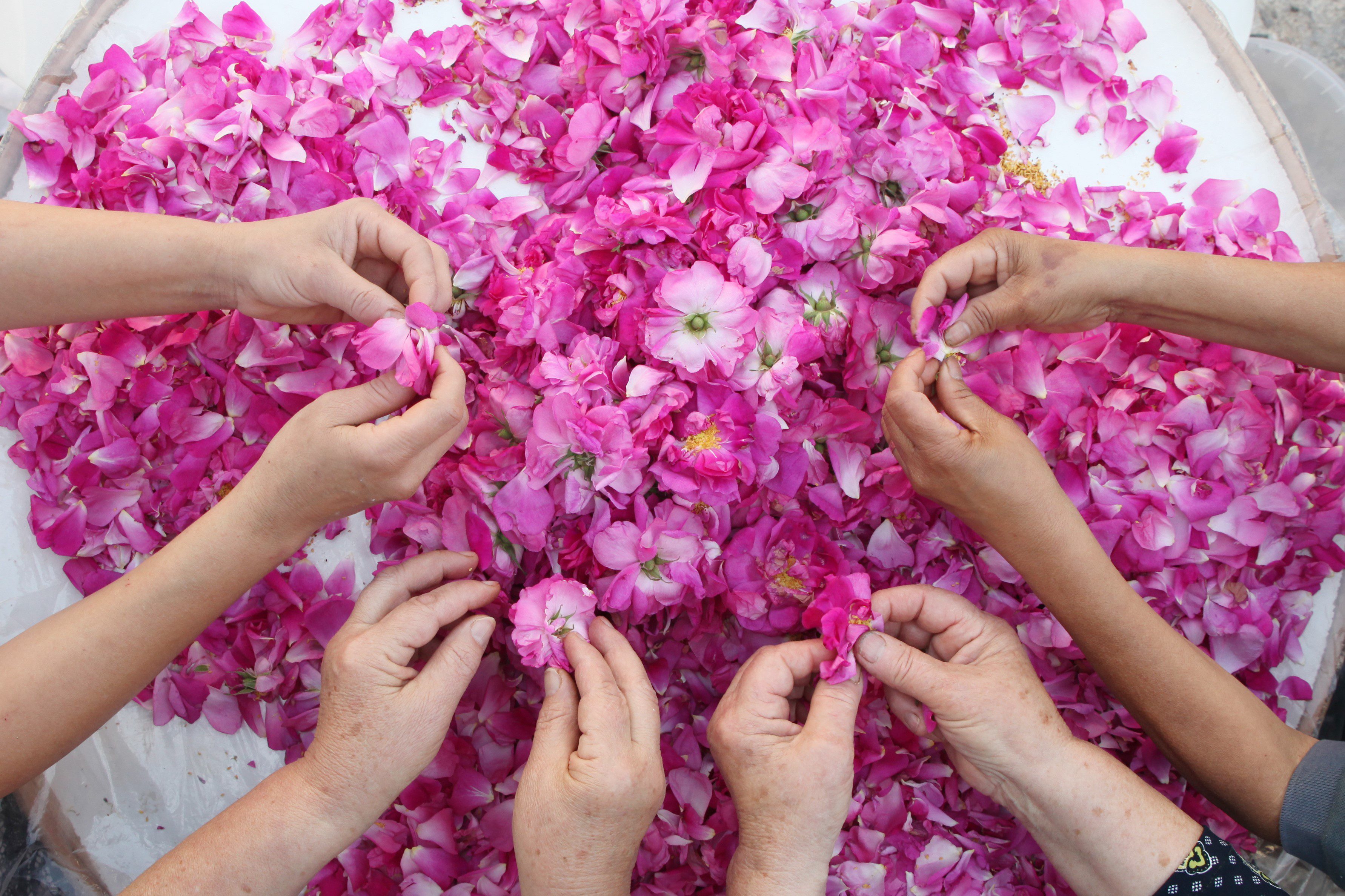 Για την αποξήρανση ροδοπέταλων χρησιµοποιείται η πρώιµη Απριλιάτικη ποικιλία, της οποίας η συγκοµιδή γίνεται µε µεγάλη προσοχή, νωρίς το πρωί, ώστε τα ροδοπέταλα να διατηρήσουν όλη τους τη φρεσκάδα και το άρωµα ακόµα και µετά τη φυσική αποξήρανση στα ράφια µε τις σίτες. Και τα τρία χιώτικα προϊόντα µπορούν να βρεθούν σε πάνω από 50 καταστήµατα στην Αττική, καθώς και σε άλλες περιοχές, όπως Χίο, Θεσσαλονίκη, Βόλος, Πάτρα και Αρκαδία, ακόµα και σε εκθέσεις σε όλη την Ελλάδα.