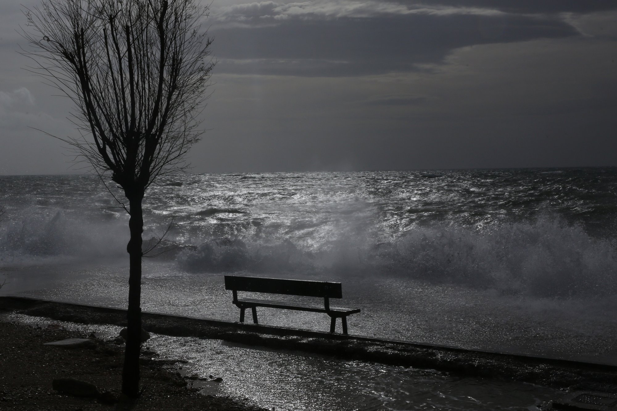 Δεμένα στο λιμάνι του νησιού βρίσκονται τα πλοία του εκτελούν το δρομολόγιο Ζακύνθου-Κυλλήνης, εξαιτίας των θυελλωδών ανέμων που πνέουν στην περιοχή.