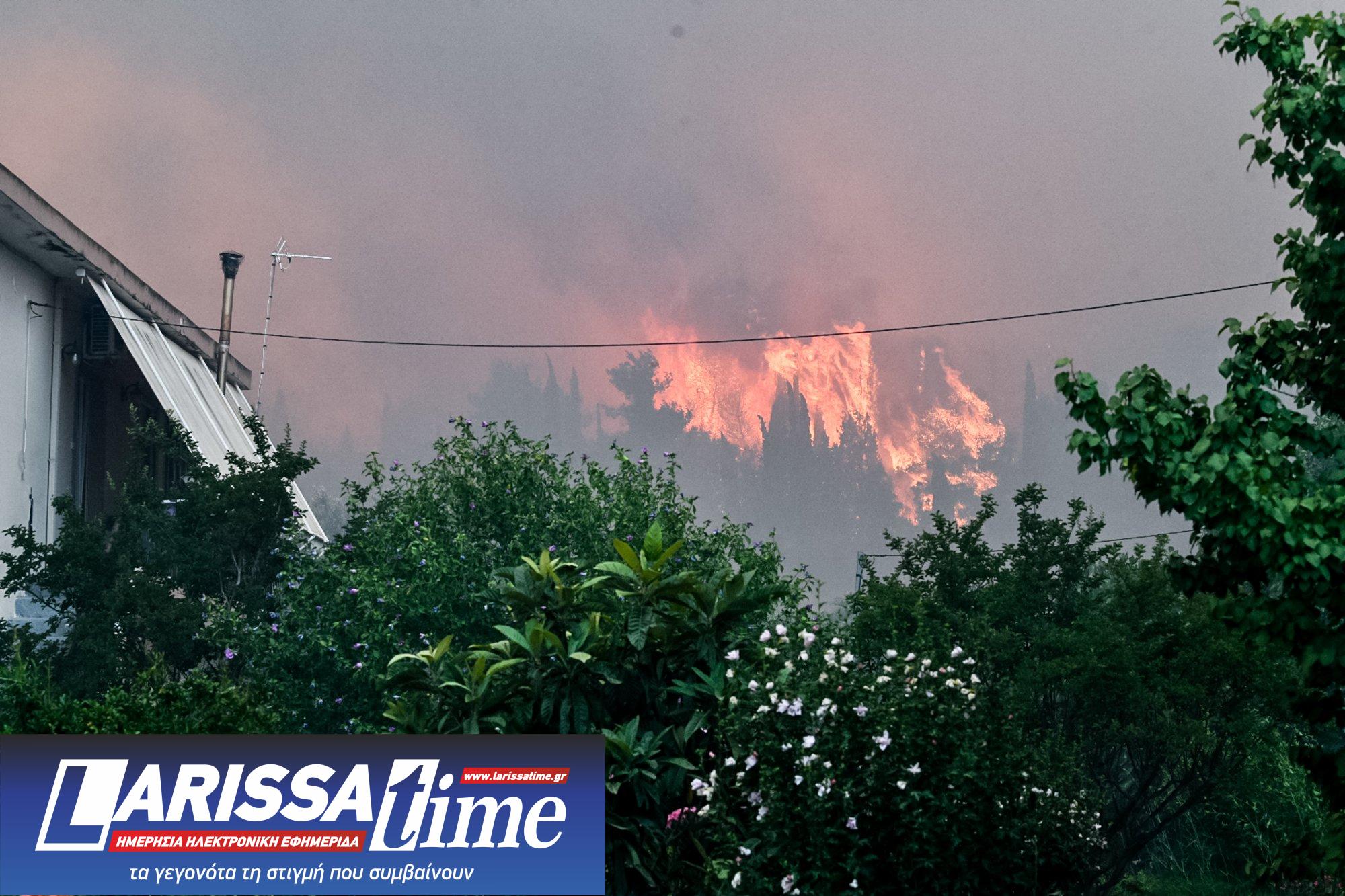 Από αέρος συνδράμουν τις προσπάθειες κατάσβεσης έξι αεροσκάφη και ένα ελικόπτερο.