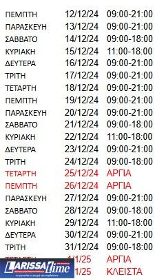Ακολουθεί αναλυτικά το προτεινόμενο ωράριο λειτουργίας των εμπορικών καταστημάτων για τα Χριστούγεννα.