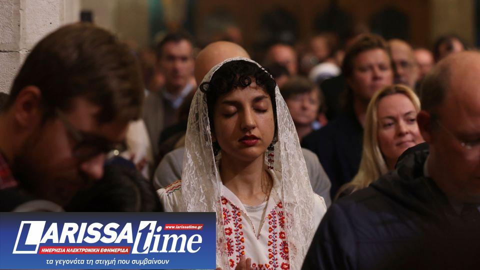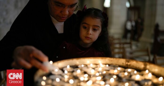Χριστιανοί προσεύχονται στη χριστουγεννιάτικη μεταμεσονύκτια λειτουργία στην εκκλησία της Γέννησης στην Βηθλεέμ της Δυτικής Όχθης