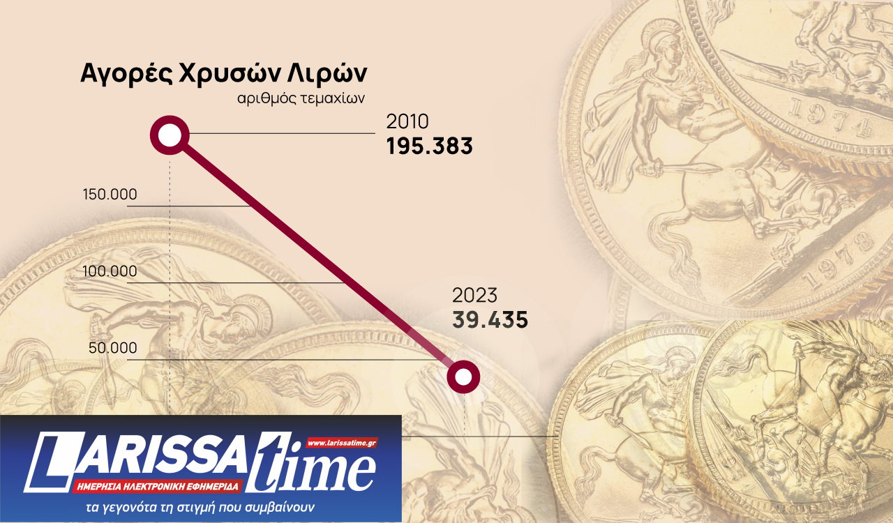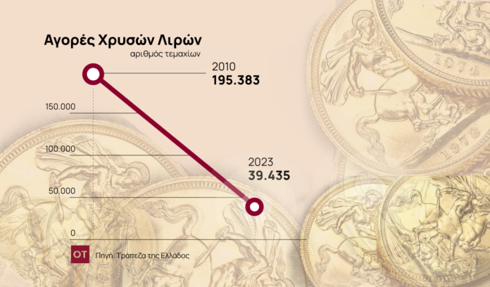 Όσοι είχαν χρυσές λίρες κρυμμένες στα… σεντούκια έσπευσαν στην ΤτΕ για να τις ρευστοποιήσουν. Το 2022 ρευστοποιήθηκαν 52.241 χρυσές λίρες και το 2023 39.435 .