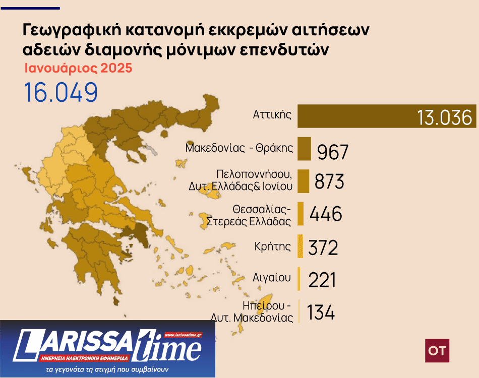 Αποκαλυπτικά είναι και τα στοιχεία του υπουργείου Μεταναστευτικής Πολιτικής και Ασύλου, σύμφωνα με τα οποία υπάρχουν εκκρεμείς αιτήσεις αδειών 13.036 στην Αττική, 967 στη Μακεδονία – Θράκη, 873 στην Πελοπόννησο, Δυτική Ελλάδα και Ιόνιο κ.α.