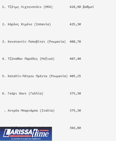 Το βάθρο συμπλήρωσε ο Ρουμάνος Κονσταντίν Ποποβίτσι με 408,70 βαθμούς.