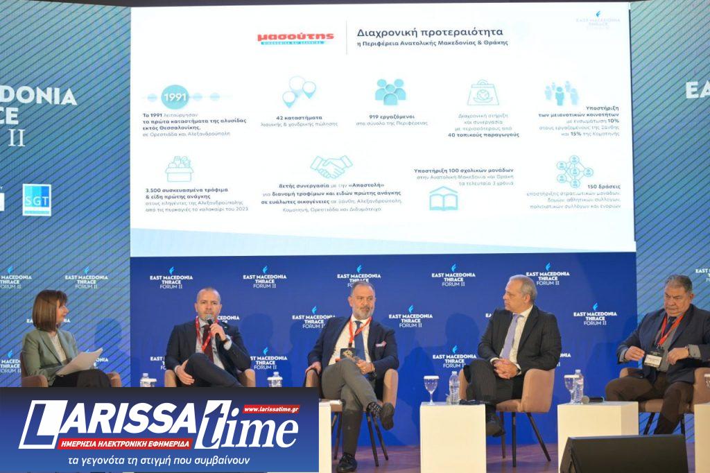 Στο αναπτυξιακό και κοινωνικό πρόσημο που αφήνει η Μασούτης στην περιοχή της Ανατολικής Μακεδονίας και Θράκης αναφέρθηκε ο marketing director της αλυσίδας σούπερ μάρκετ, Γιάννης Καλαϊτζάκης, συμμετέχοντας στο East Macedonia & Thrace Forum II που διοργανώνει το City Hub Events στην Αλεξανδρούπολη.