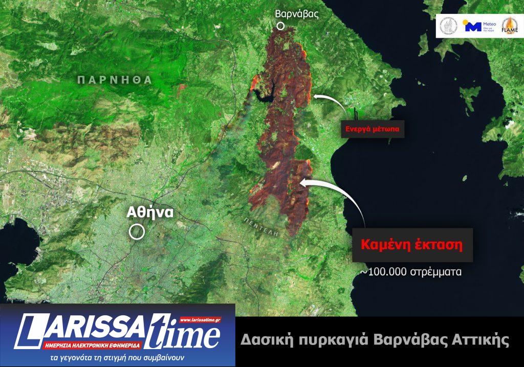 Η πυρκαγιά επηρέασε προσεγγιστικά περίπου 100 χιλιάδες στρέμματα σύμφωνα με τα δορυφορικά δεδομένα του ευρωπαϊκού δορυφόρου Sentinel-2 που επεξεργάστηκε το Εθνικό Αστεροσκοπείο Αθηνών/meteo.gr.