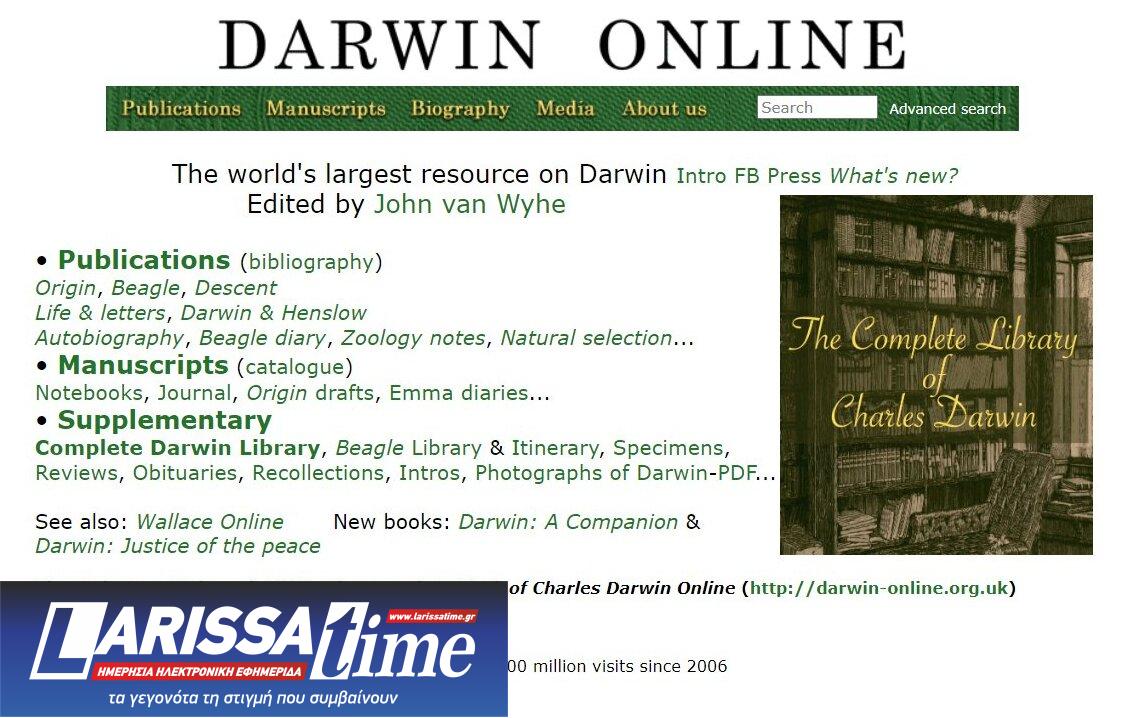 Για πρώτη φορά μετά το θάνατό του το 1882, η εντυπωσιακή βιβλιοθήκη του Κάρολου Δαρβίνου έχει επανασυναρμολογηθεί εικονικά για να αποκαλύψει το πλήθος των βιβλίων, φυλλαδίων και περιοδικών που διάβασε και ανέφερε στα συγγράμματά του ο επιδραστικός φυσιοδίφης.
