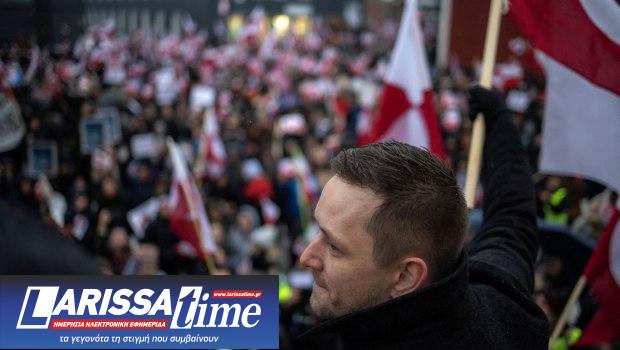 Ο πρωθυπουργός της Γροιλανδίας, Γενς-Φρέντερικ Νίλσεν, σε διαδήλωση διαμαρτυρίας στο Νουούκ κατά των ΗΠΑ, στις 17 Ιανουαρίου (REUTERS/Marko Djurica)
