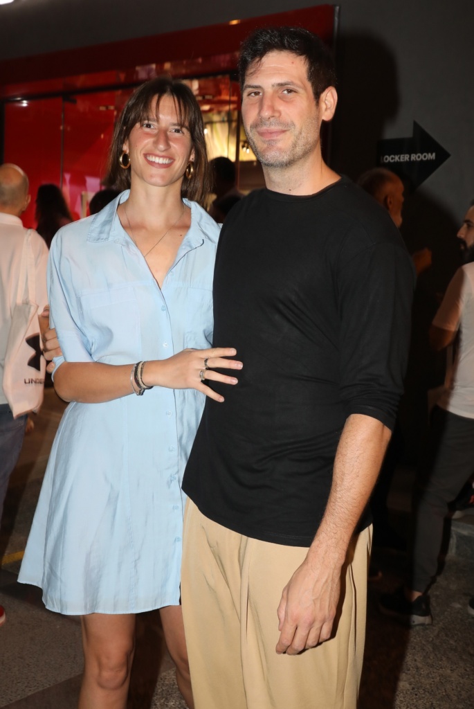 Ο Θανάσης Πατριαρχέας φορούσε ένα μπεζ μπαντελόνι με μαύρο t-shirt και μαύρα sneakers, ενώ δίπλα του η σύζυγός του, Βίβιαν Δράκου έδειχνε στιλάτη με ένα shirt dress σε baby blue απόχρωση και χρυσούς κρίκους, ενώ ολοκλήρωσε το look με μαύρα sneakers και λευκές κάλτσες, συνθέτοντας ένα casual chic look.