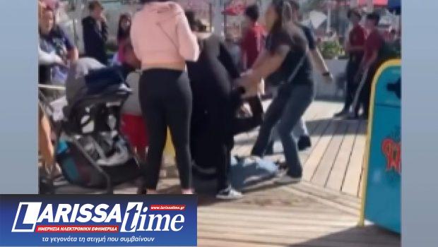 Σε βίντεο που δημοσιεύτηκε στο Instagram τουλάχιστον πέντε γυναίκες ανάμεσά τους και μια με καροτσάκι χτυπούν με μανία μια γυναίκα που βρίσκεται αβοήθητη στο έδαφος.