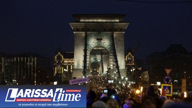 Διαδηλωτές συγκεντρώθηκαν στο κέντρο της Βουδαπέστης, παρά το κρύο, και πραγματοποίησαν μια σοβαρή πορεία κατά μήκος του Δούναβη. Πολλοί διαδηλωτές άναψαν πυρσούς καθώς έπεφτε το σούρουπο και άρχισαν να ανεβαίνουν προς τα γραφεία του Όρμπαν στο Castle Hill.