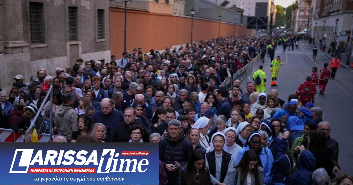 Μέσα στη Βασιλική του Αγίου Πέτρου, κάτω από το άγρυπνο, μαρμάρινο βλέμμα των παλαιότερων προκατόχων του παπικού θρόνου, ένα ανθρώπινο ποτάμι κινείται σταθερά προς το φέρετρο του πάπα Φραγκίσκου για να αποτίσει τα σέβη του.