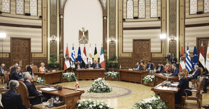 Χρειάστηκαν σχεδόν δώδεκα μήνες και διαρκείς διαβουλεύσεις που ανέβασαν «στροφές» –ειδικά μετά την έναρξη του πολέμου στη Μέση Ανατολή τον Οκτώβριο–, έως την υπογραφή της «στρατηγικής συμφωνίας» μεταξύ Ευρωπαϊκής Ενωσης και Αιγύπτου –ύψους 7,4 δισ. ευρώ σήμερα στο Κάιρο– από την πρόεδρο της Κομισιόν Ούρσουλα φον ντερ Λάιεν, παρουσία του προέδρου της Κύπρου Νίκου Χριστοδουλίδη και των πρωθυπουργών της Ελλάδας Κυριάκου Μητσοτάκη, της Ιταλίας Τζόρτζια Μελόνι και του Βελγίου Αλεξάντερ ντε Κρο.