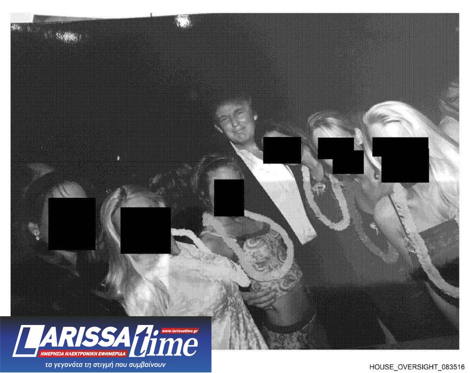 Μία εικόνα που δόθηκε στη δημοσιότητα την Παρασκευή δείχνει ένα μπολ με προφυλακτικά – σουβενίρ με καρικατούρα του προσώπου του Τραμπ. Άλλη φωτογραφία δείχνει τον Τραμπ με έξι γυναίκες με λουλούδια γύρω από τον λαιμό, των οποίων τα πρόσωπα έχουν καλυφθεί από την επιτροπή.