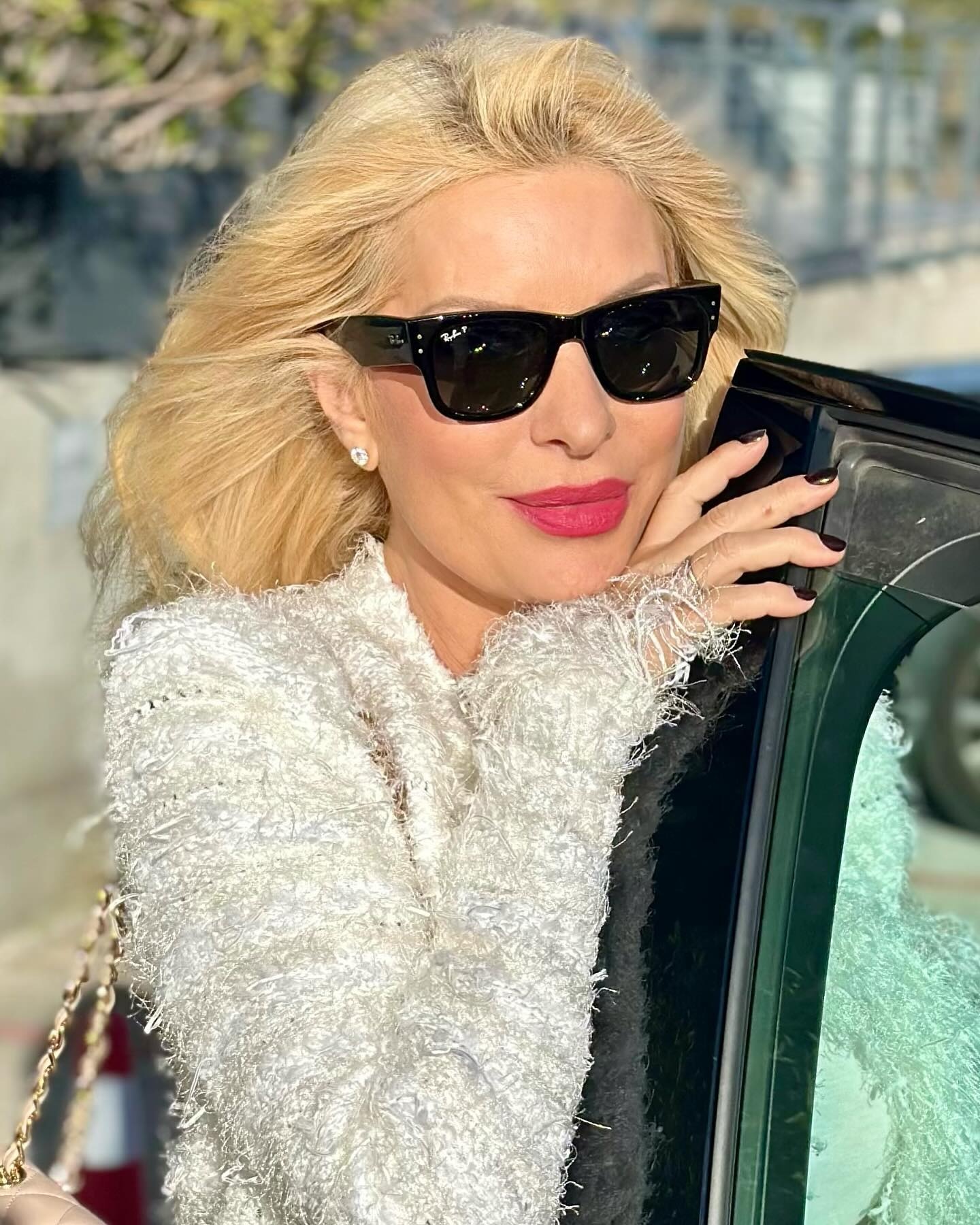 Εκτός από την τσάντα, η βασίλισσα της ελληνικής τηλεόρασης δεν αποχωρίστηκε τα μαύρα γυαλιά της, ενώ επέλεξε να φορέσει ένα απλό τζιν.