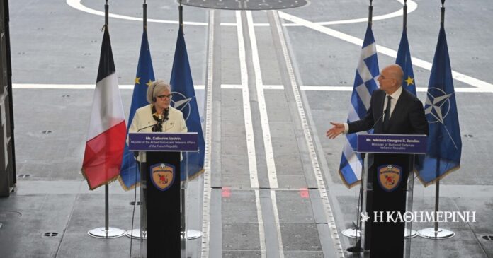 Αυτό ανέφερε, μεταξύ άλλων, ο υπουργός Αμυνας Νίκος Δένδιας κατά τις κοινές δηλώσεις του με τη Γαλλίδα ομόλογό του Κατρίν Βοτρέν, στη φρεγάτα «Κίμων».