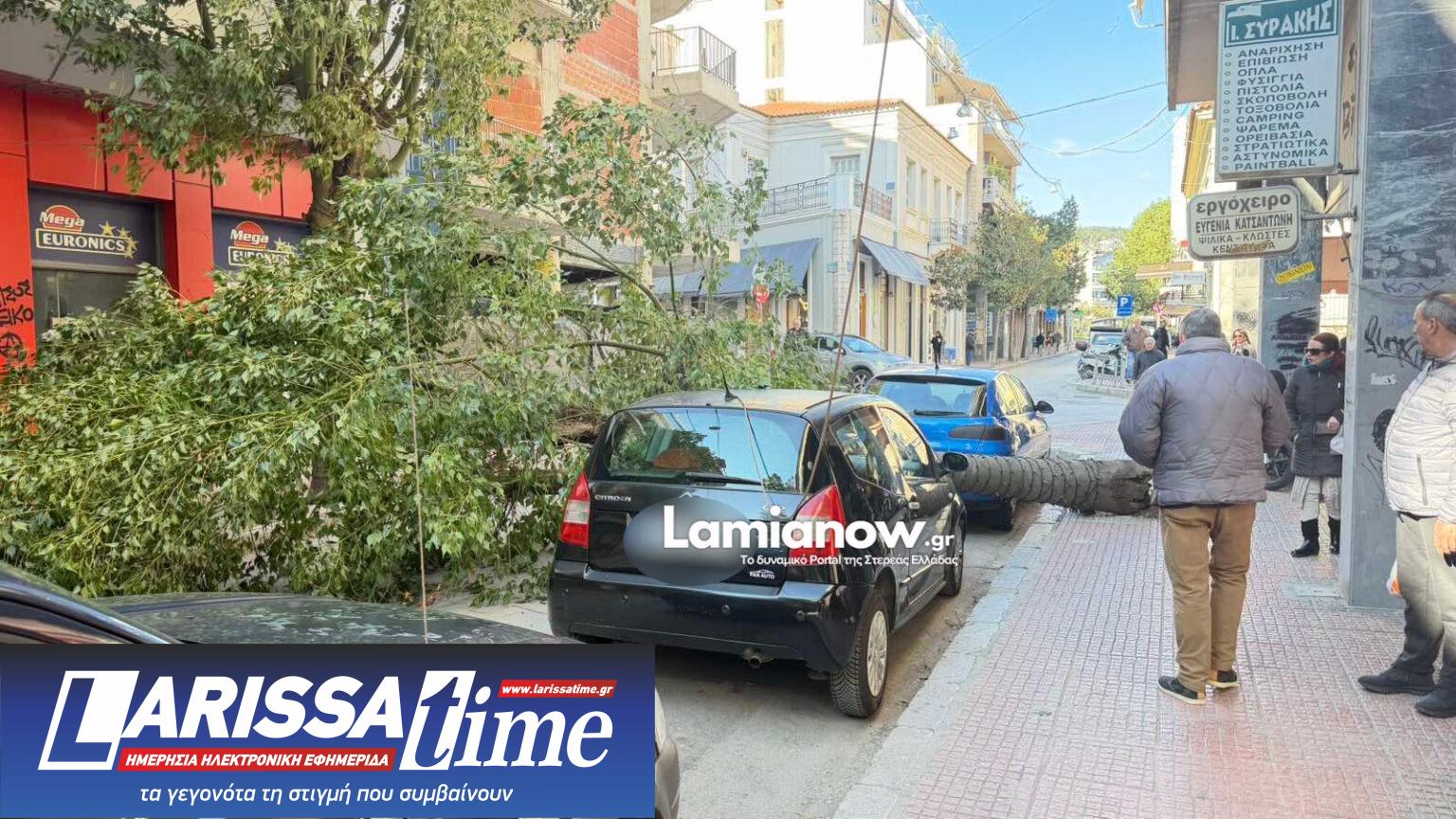 Ένα δέντρο έπεσε στο κέντρο της Λαμίας λίγο πριν από τις 12:00 το μεσημέρι.