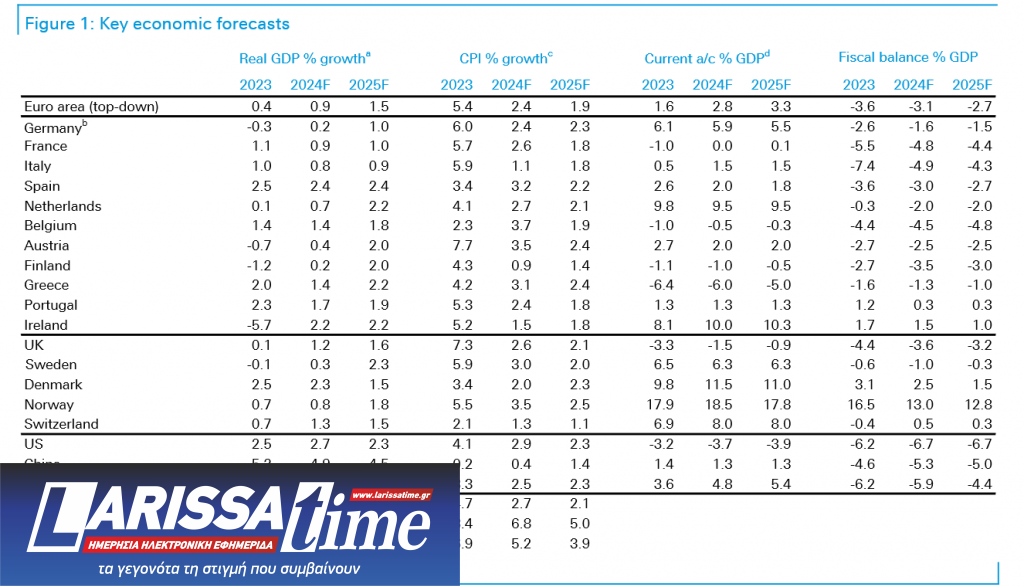Πιο αισιόδοξη είναι στο μέτωπο του ισοζυγίου τρεχουσών συναλλαγών, όπου βλέπει να πέφτει στο 6% το φετινό έλλειμμα και στο 5% το έλλειμμα του 2025, ενώ στο δημοσιονομικό μέτωπο, το έλλειμμα του προϋπολογισμού αναμένεται στο 1,3% και 1% τις δύο χρονιές. ![]()