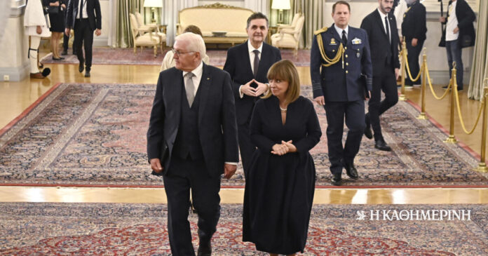 Επίσημο δείπνο προς τιμήν του Γερμανού προέδρου, Φράνκ-Βάλτερ Σταϊνμάιερ, ο οποίος πραγματοποιεί επίσημη επίσκεψη στη χώρα μας, παρέθεσε την Τετάρτη στο Προεδρικό Μέγαρο η Πρόεδρος της Δημοκρατίας, Κατερίνα Σακελλαροπούλου.