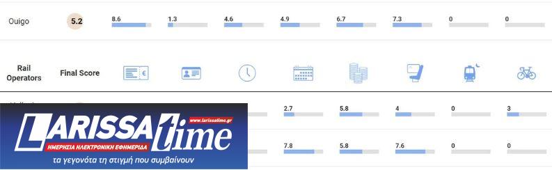 Πρώτη η Trenitalia, δεύτερη από το τέλος η Hellenic Train