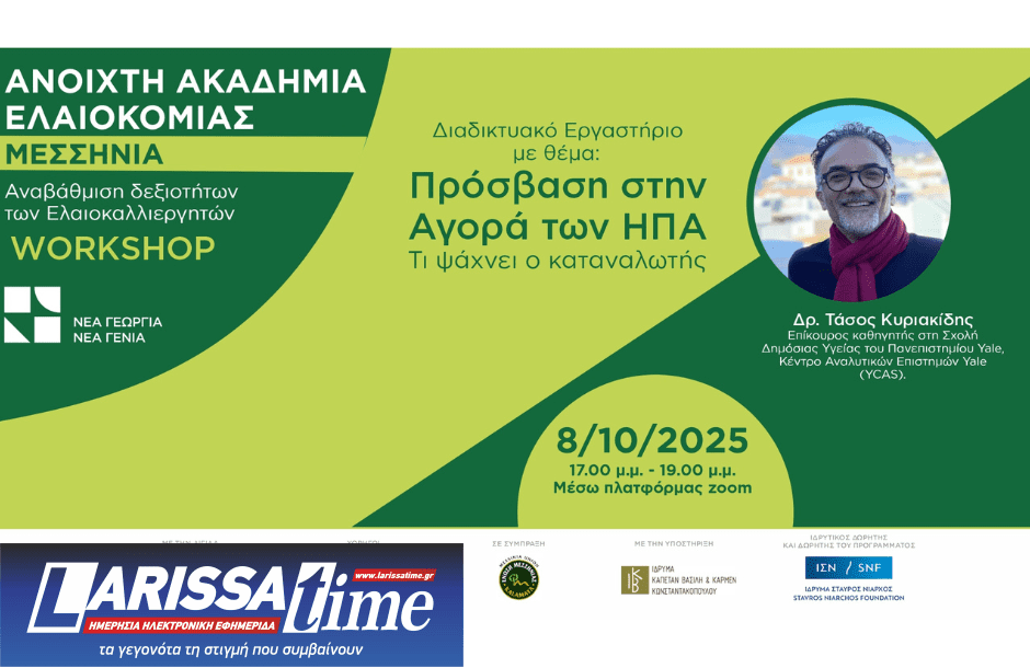 Διαδικτυακό σεμινάριο για την πρόσβαση του ελαιολάδου στην αγορά των ΗΠΑ από Νέα Γεωργία Νέα Γενιά, 8/10