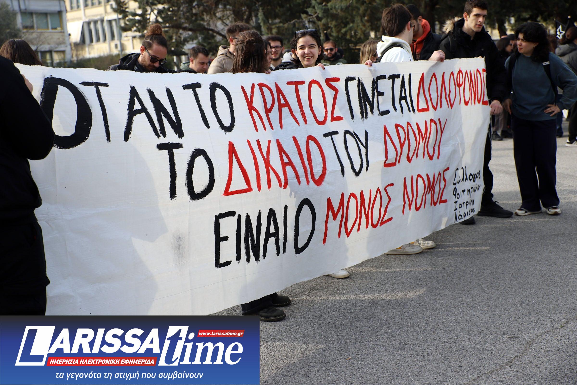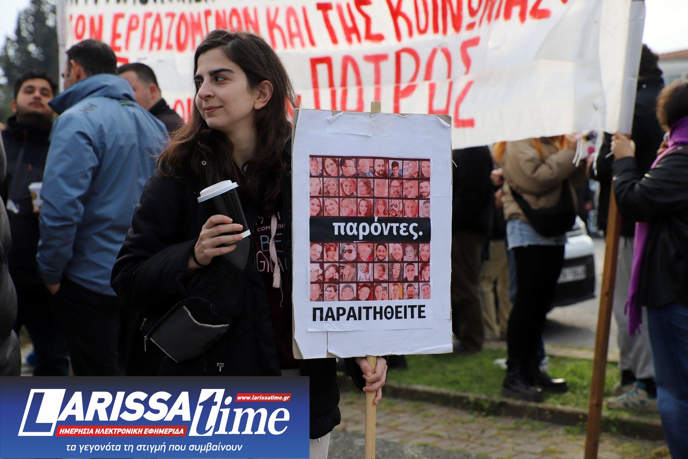 Οι συγκεντρωμένοι άρχισαν να καταφθάνουν από νωρίς το πρωί, με λεωφορεία και άλλα μέσα μεταφοράς από περιοχές της Θεσσαλίας, αλλά και από τη Θεσσαλονίκη και την Αθήνα, εκφράζοντας την απαίτησή τους για απόδοση δικαιοσύνης και ασφαλείς δημόσιες μεταφορές.