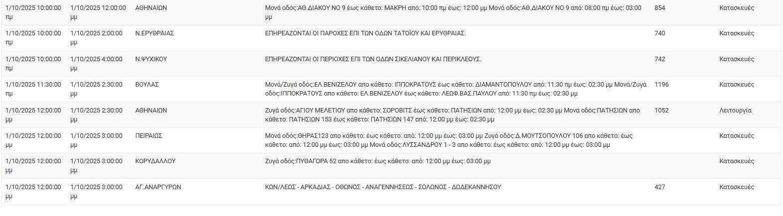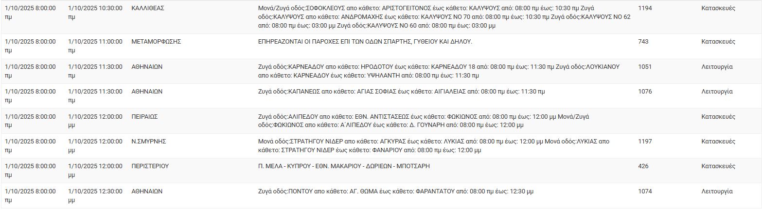 Διακοπές ρεύματος σήμερα (1/10) στην Αθήνα και σε άλλες 13 περιοχές της Αττικής